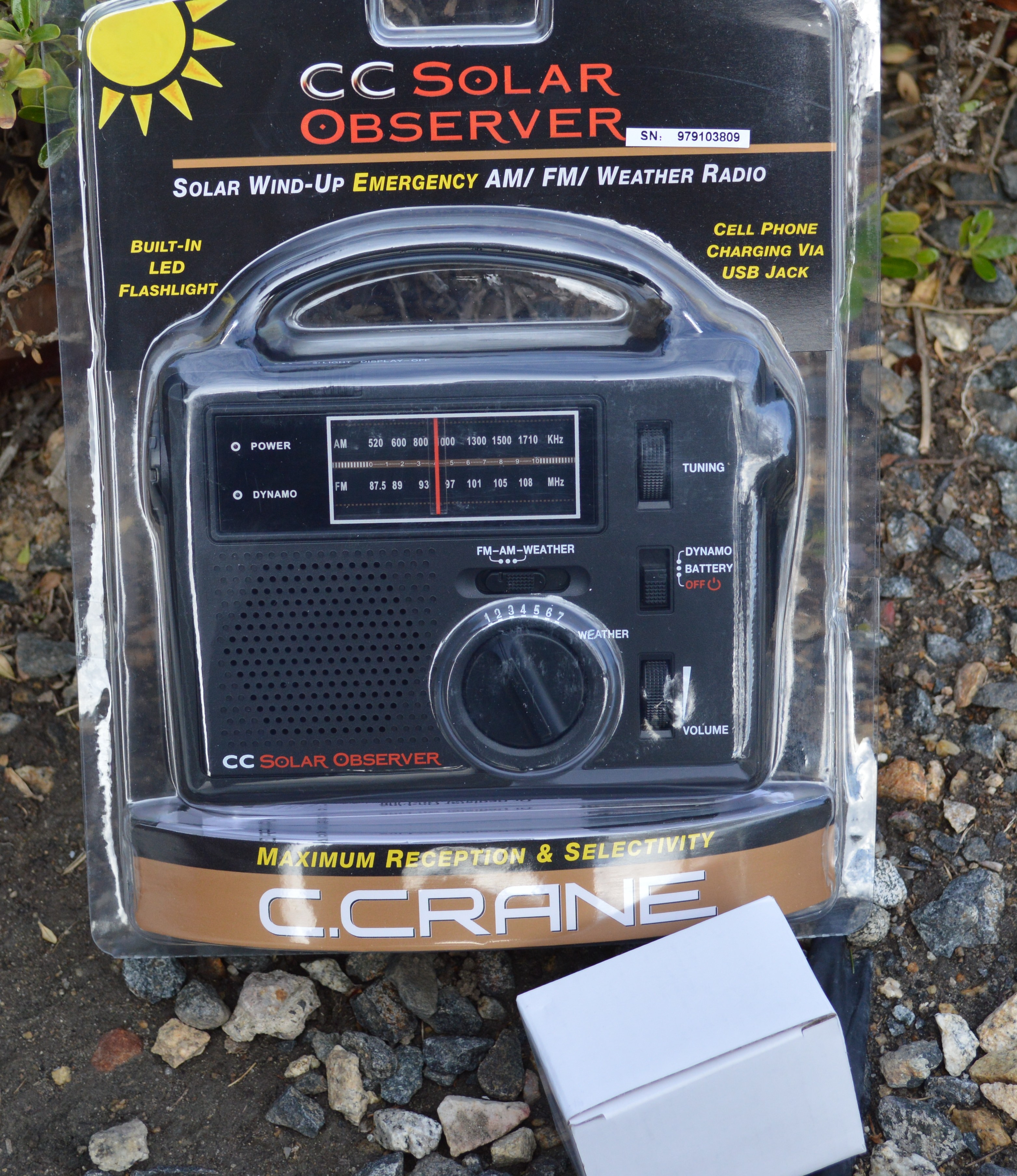 The CC Solar Observer, this is a great emergency preparedness item to have on hand! It is a wind-up emergency radio with AM/FM and Weather bands, and a built-in 3-LED flashlight. It has better audio and reception that sets it apart from other wind-up radios and in a power outage it is critical to have a radio that has good reception and that you can depend on. The CC Solar Observer has about as many different power options as a radio can have: