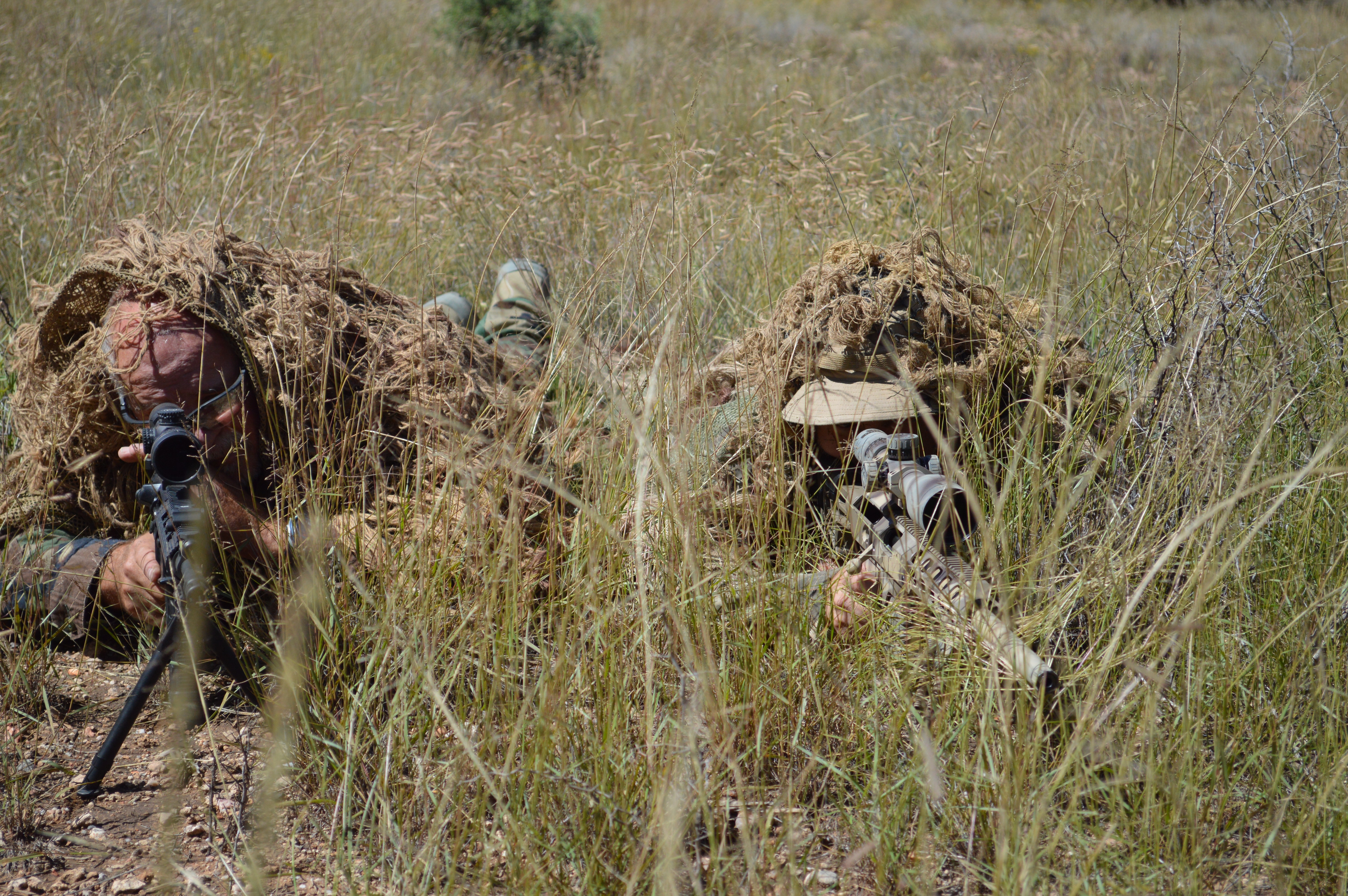 After digging the holes, I place the tool back into my pocket and pulled up the rifle to where I could reach the bi-pods. Slowly opening the bi-pods to where the legs were extended. I placed each bi-pod leg in the holes. I then position the rifle up against my shoulder and which put pressure on the bi-pod legs. See, when the bi-pod legs are in the holes, it puts pressure on them but makes the rifle steady. I have had several bi-pod break loose or the bi-pod unit would come off the rifle in training. That is not good at all. I needed a great bi-pod to withstand the REAL world environment. That’s where GG&G comes in. I bought this Extreme Swivel Bipod from them and it works great! Never failed me yet.