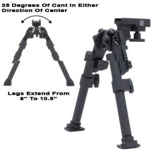 Thumbnuts adjust the height between 8”-10.5” when measured from the dovetail attachment.Legs can be silently deployed and the bipod can be installed on the weapon with the legs facing forward or backwards and are ready for use in either position.