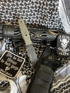 what each person was going to use in this class. Each person was, “sizing” each other one up. One by one each person pulled out their own personal fixed blade. Believe it or not the blade you carry tells a story of who you are and what style of fighting you are. But, no one really cared until the instructor showed his. That was about the time I walked into the room. Being the instructor you have to set a precedence’s in this class of Tier One operators. I sat my bag down and reached into it pulling out my AF 4.5 knife I got from Boker USA.