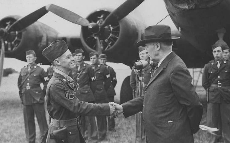 For his actions, Smith was awarded the Congressional Medal of Honor by the Secretary of War Henry L. Stimson. This would be the first Medal of Honor presented to a living Airman, the first awarded to an Airman for heroism in the European theater, the first awarded to an enlisted Airman and the first Medal of Honor to be presented by the Secretary of War in the theater of action.