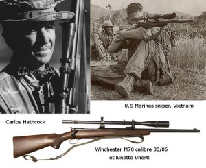 The most well known Marine sniper of the Vietnam war has become a modern legend. A native of Little Rock, Arkansas, Gunnery Sergeant Carlos N. Hathcock II joined the Corps in 1959 at age 17. Hathcock was soon a member of the USMC rifle team, and in 1965 he won the Wimbledon Cup, a 1000-yard individual match fired at the National Matches in Camp Perry, Ohio. Interestingly, Hathcock won that prestigious trophy with a Winchester Model 70.