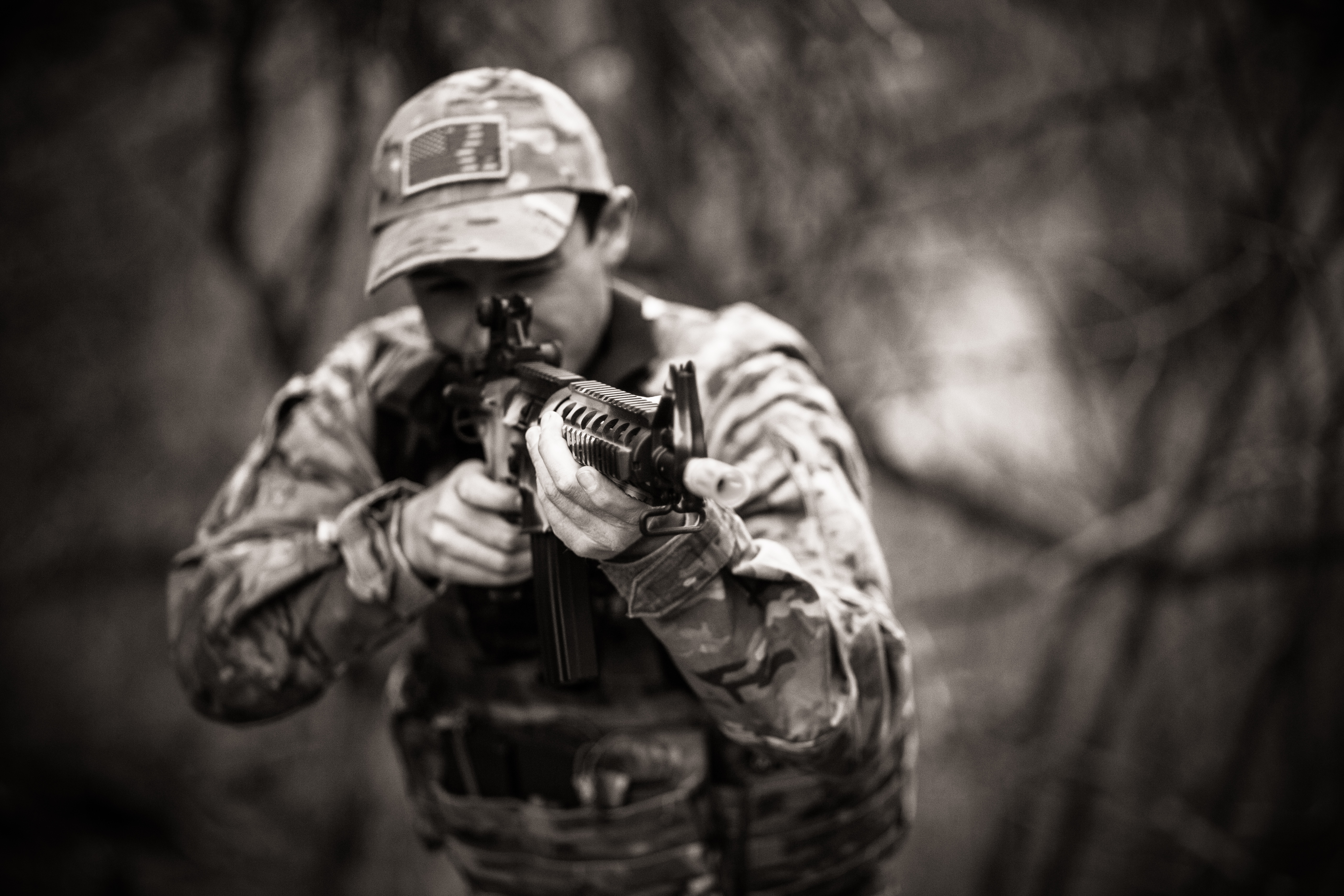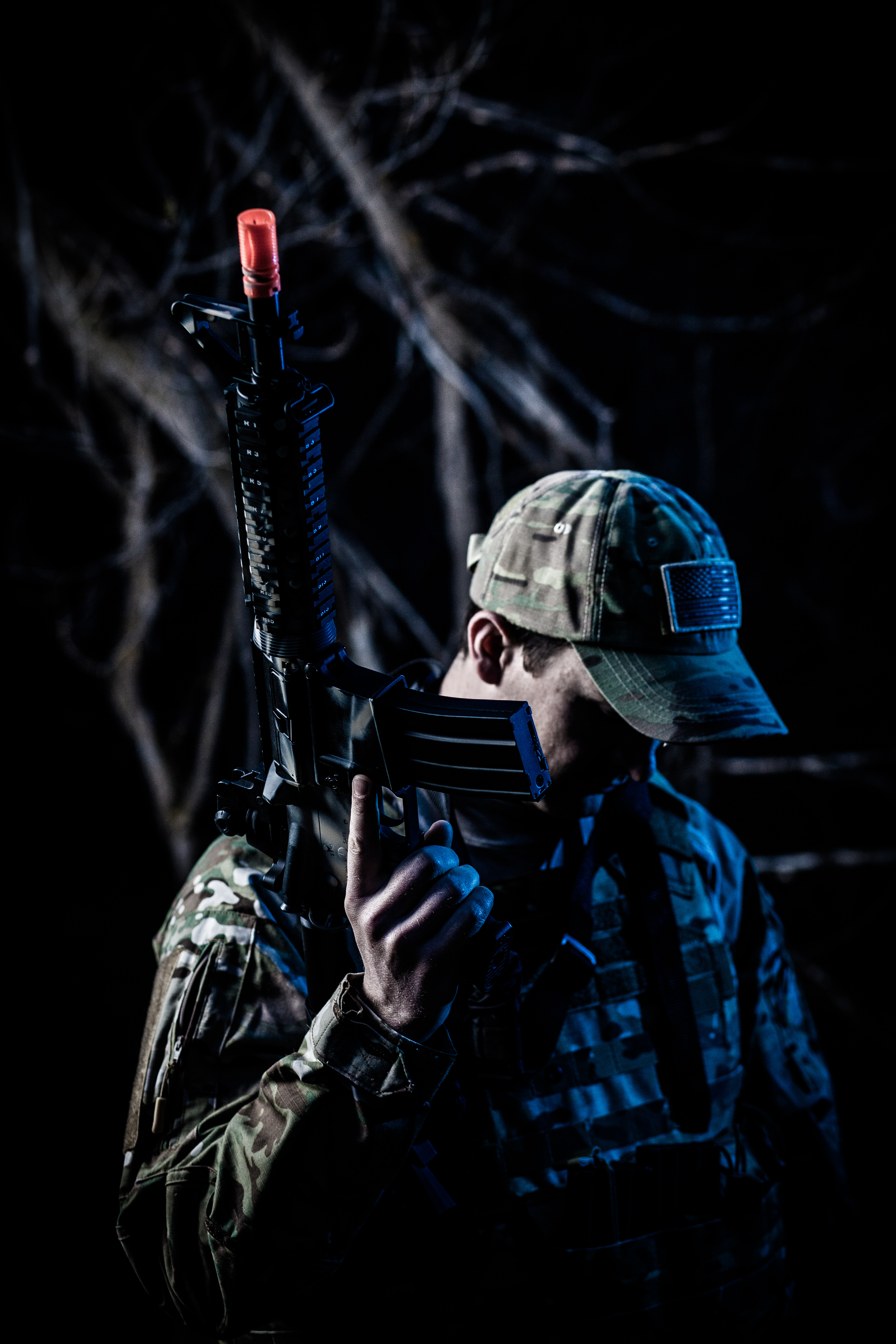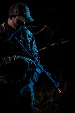 The sun is starting to go down and here I set in the woods, fully camo out (face included) waiting for what I would call, “The Enemy.” The next thing I hear off to the right is some. You know the sound? The one sound you hear and you do not know if it is a animal, the killer Jason or the enemy you are searching for. I see them now, it is the enemy I am looking for just far enough that it looks as they are heading my way. This is great, because I am using my new Colt M4 Full Metal AEG that I got from Pyramyd Air and it is fully charged up.