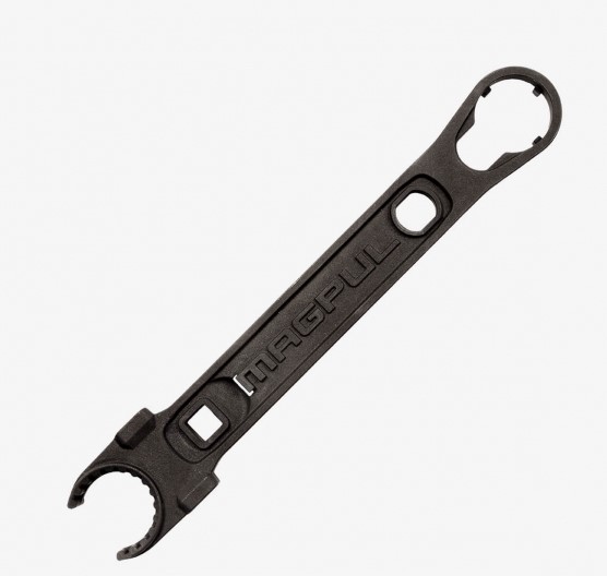 The Magpul Armorer’s Wrench – AR15/M4 is an American-made, extremely durable, solid steel tool that’s comfortable to grip. Engages both stock and pin-style barrel nuts. Fits standard sized flash hiders. Installs and removes rifle receiver extensions and carbine castle nuts, and has extended teeth for use with ASAP® plates. Includes two hammer faces.
