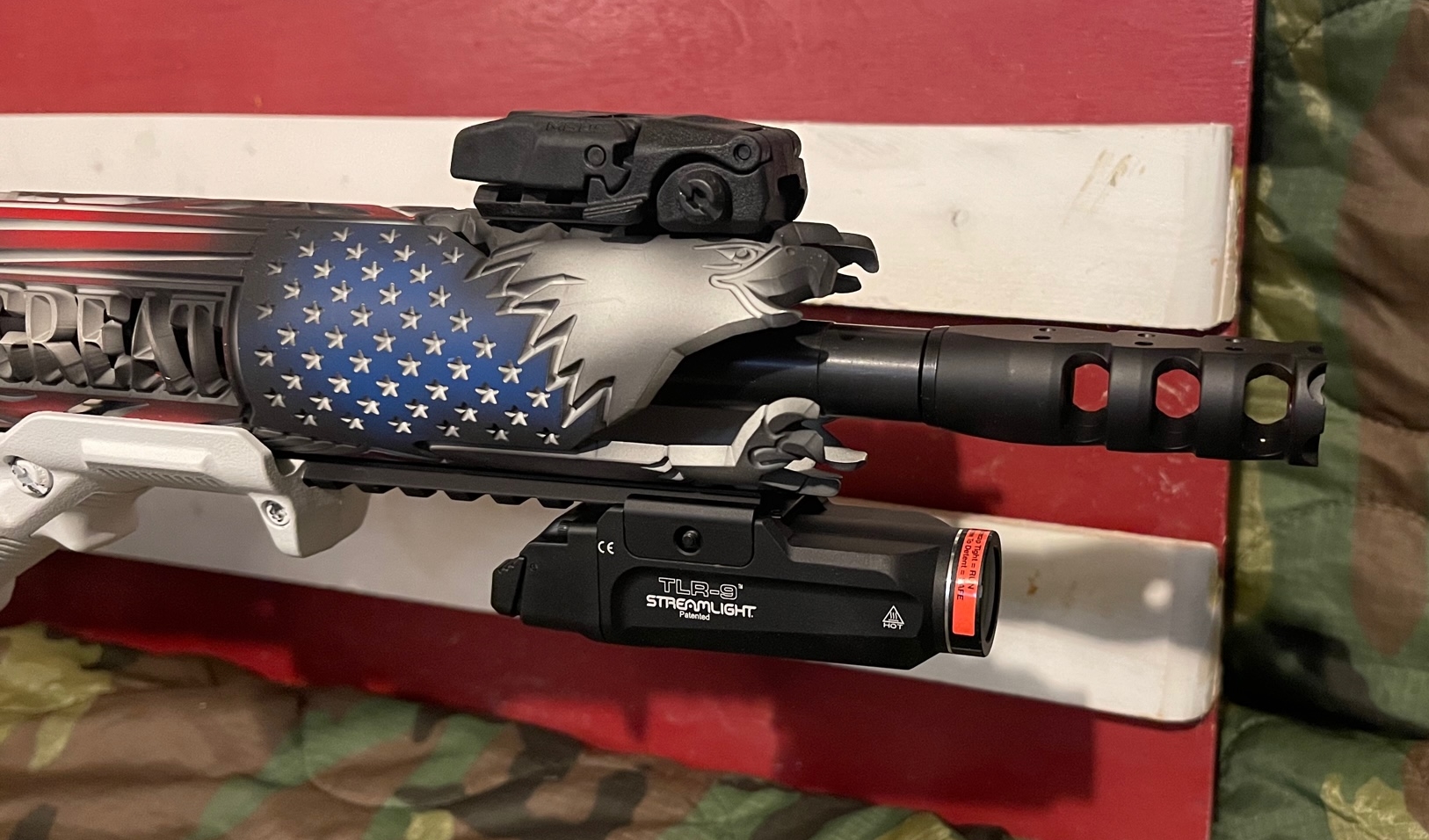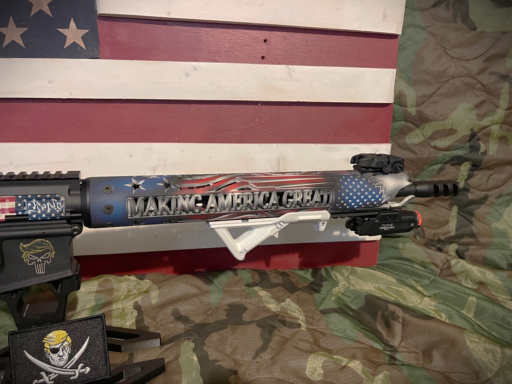 I wanted it to look very much patriotic!! I had them make the standard length handguard with of course the colors of red, white and blue for the American flag. What