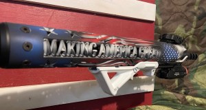 of the handguard you can see the flag as if it was soring in the clear blue sky, with not only larger stars, but smaller ones as well. Now, how can you not top an American flag without the good ol’ American eagle! Now, I did have the eagle on the front of the handguard not as bright as the rest of the handguard. I wanted it to have this rustic look to it. I wanted the focus in the center of the rifle.