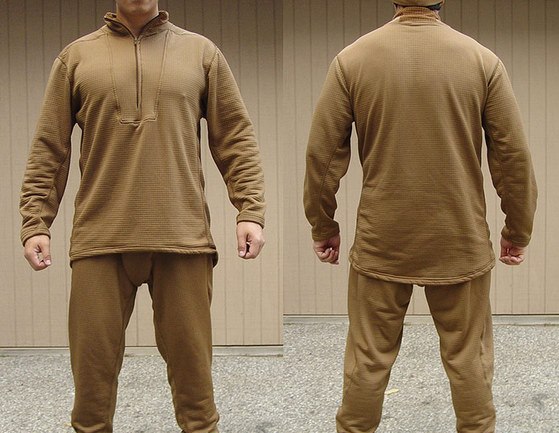 A durable, silk weight Polartec Power Dry fabric worn next to the skin wicks away moisture and dries fast. It consists of a crew neck T-shirt and boxer shorts, or is available in long-sleeve top with invisible zipper and pants, built for comfort and minimal weight.