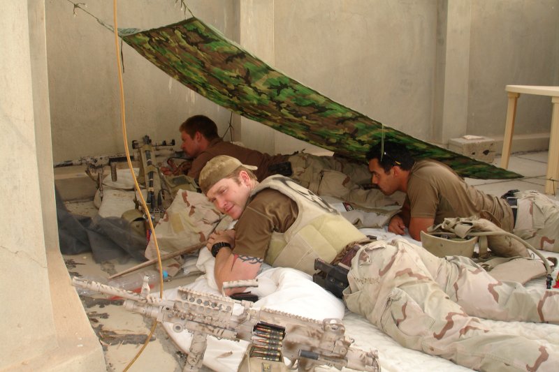 Assigned to SEAL Team 3, sniper element, platoon “Charlie” (later “Cadillac”), within the Naval Special Warfare Command, and with four tours of duty, Kyle served in many major battles of the Iraq War. His first long-range kill shot was taken during the initial invasion when he shot a woman approaching a group of Marines while carrying a hand grenade. CNN reported that the woman was cradling a toddler in her other hand. As ordered, Kyle opened fire, killing the woman before she could attack. He later stated, “the woman was already dead. I was just making sure she didn’t take any Marines with her. It was clear that not only did she want to kill them, but she didn’t care about anybody else nearby who would have been blown up by the grenade or killed in the firefight. Children on the street, people in the houses, maybe her child.”