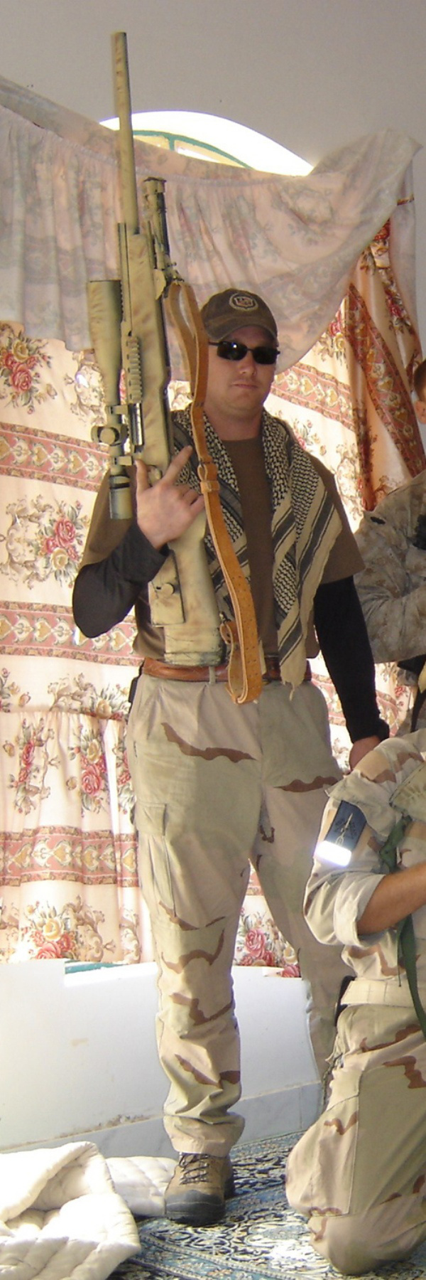 Sadr City, he killed an insurgent sniper aiming at other members of the US military with “a straight-up luck shot” from his McMillan Tac-338 sniper rifle from about 2,100 yards (1,920 m) away.